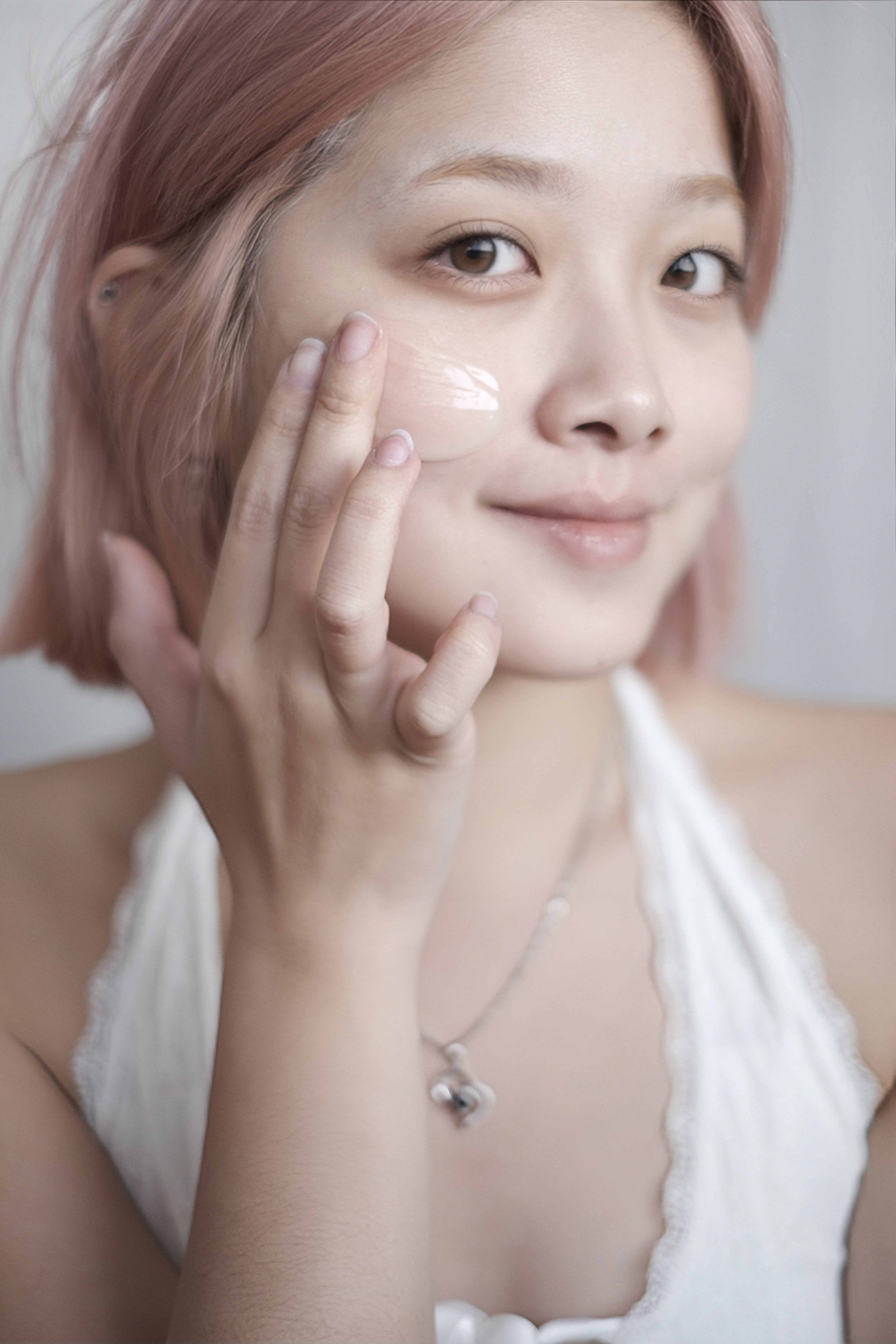 我會先在掌心搓熱,再用按壓的方式上臉